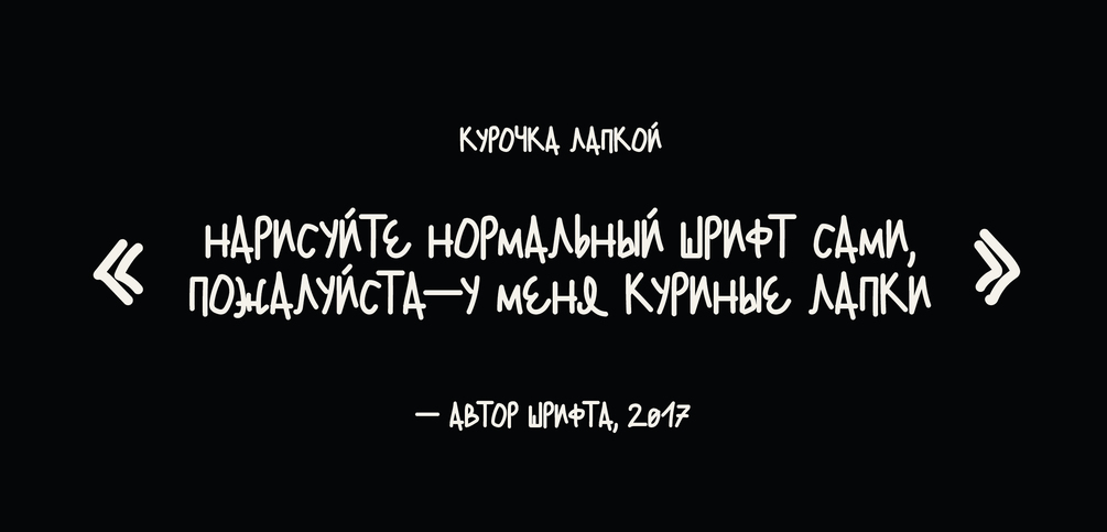 Kurochka Lapkoi / Chicken Scratch is a new typeface made in 1 day. It doesn’t need more time to write like kurochka lapkoi.